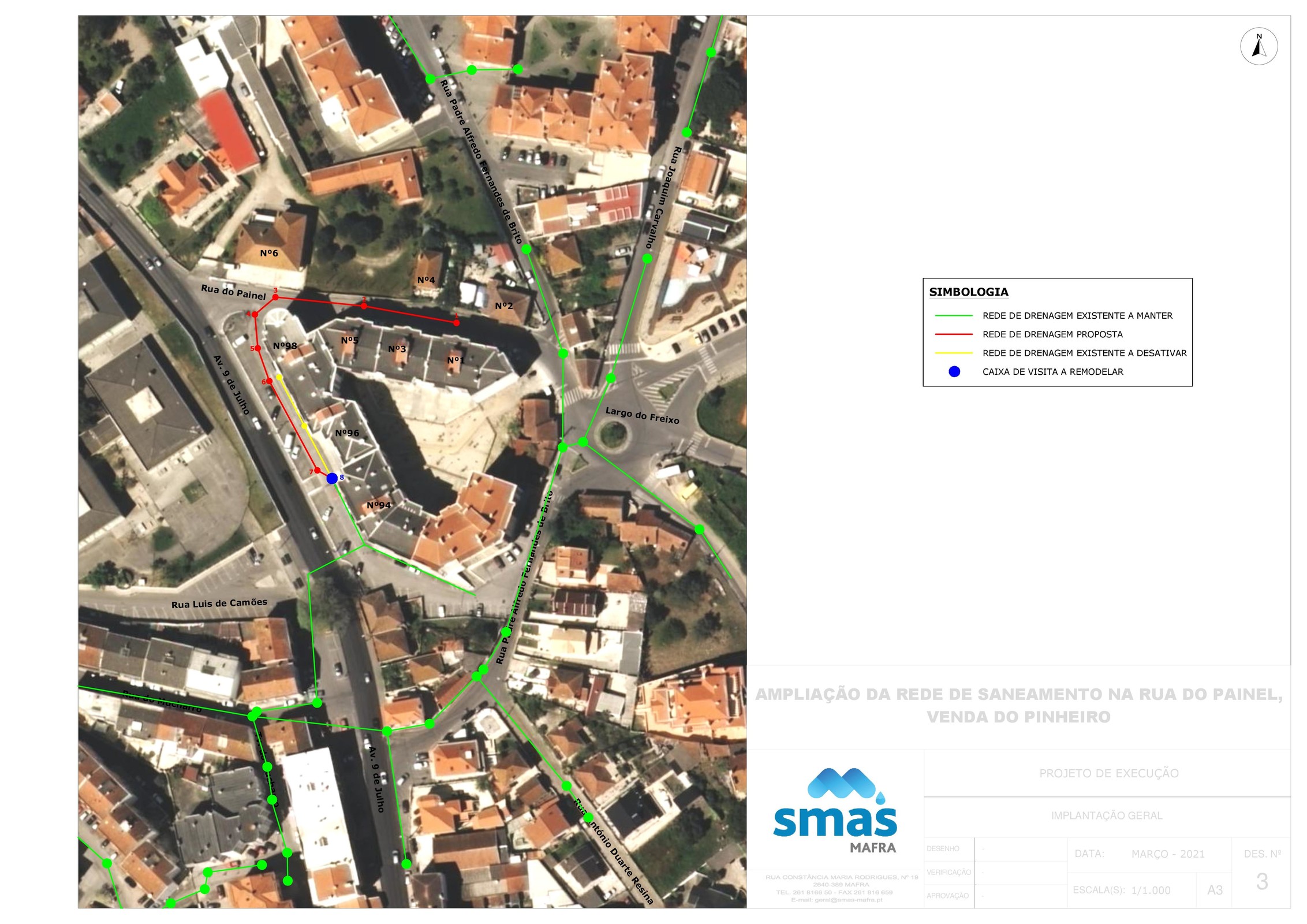 A empreitada de Ampliação da Rede de Saneamento na Rua do Painel, na Venda do Pinheiro, encontra-se a decorrer. Esta intervenção visa a ampliação da rede de saneamento, com a instalação de um novo coletor ao longo da rua, com uma extensão de cerca de 140 metros. Os 40 metros finais dizem respeito ao reperfilamento do coletor existente, que permitirá viabilizar a ligação gravítica à rede existente. Para execução da empreitada, verificam-se constrangimentos de trânsito na Rua do Painel, previsivelmente até dia 30 de junho de 2021. Face aos incómodos causados por esta obra, os Serviços Municipalizados de Água e Saneamento de Mafra (SMAS) apelam à melhor compreensão dos munícipes.