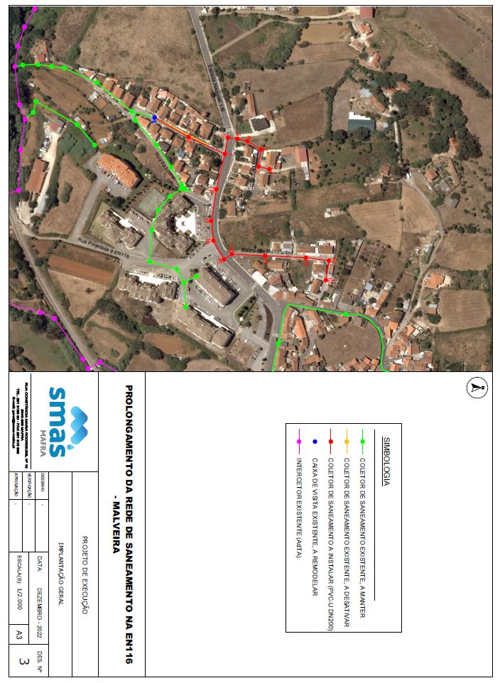 A intervenção, com extensão de cerca de 470 metros, prevê a ligação do referido sistema a um conjunto de edificações que atualmente não são servidas, sitas em arruamentos confinantes com a Estrada Nacional 116.