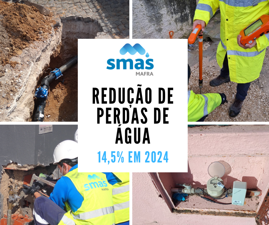 Sabia que, em 2024, o Município de Mafra registou apenas 14,5% de água não faturada, o valor mais baixo de sempre? Este foi o quarto ano consecutivo em que foram registados valores decrescentes neste parâmetro, resultado do investimento dos Serviços Municipalizados de Água e Saneamento de Mafra (SMAS de Mafra) na redução das perdas de água potável no sistema de distribuição.
